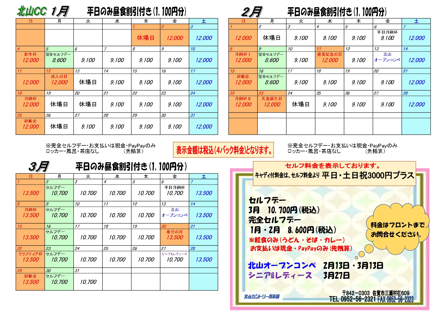 ※料金にはゴルフ場利用税、消費税が含まれています。